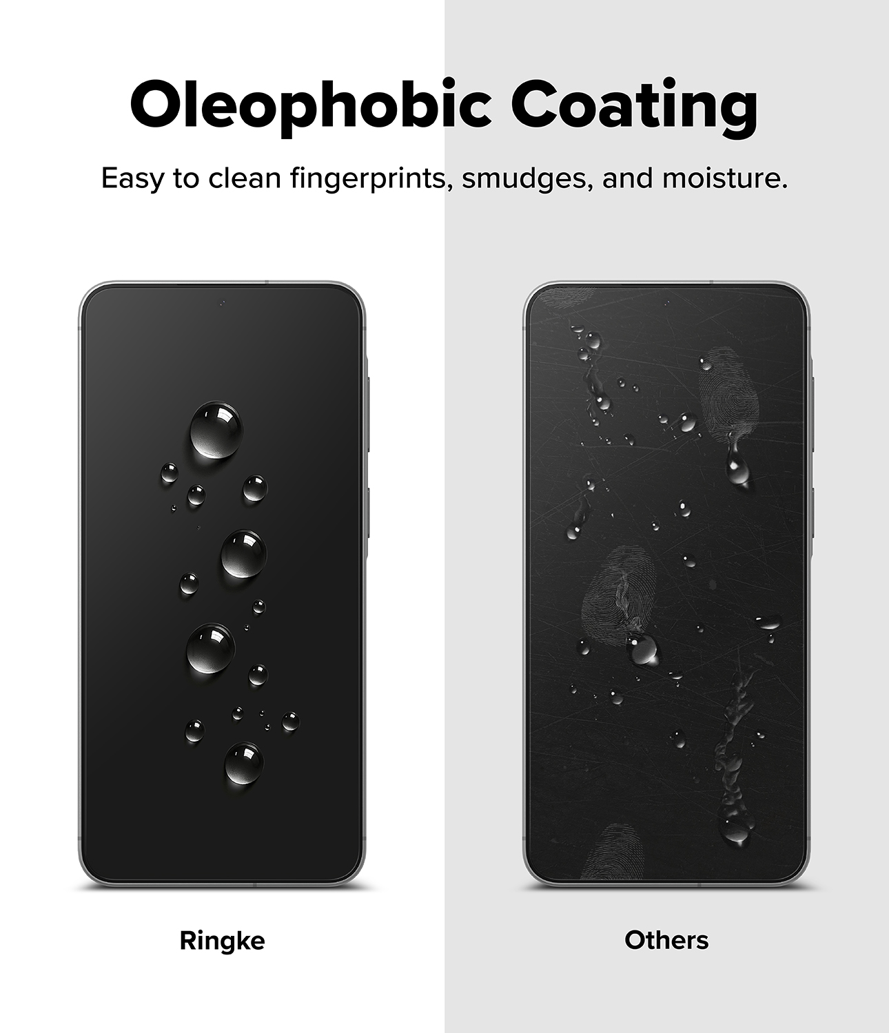Oleophobic coating withstands fingerprints, oil smudges, and moisture.
