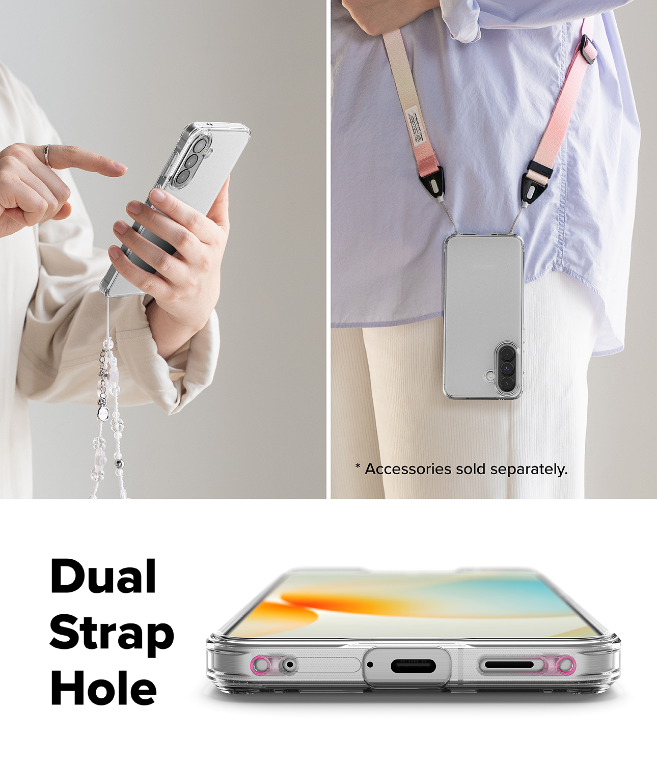 Duo-QuikCatch lanyard holes on each side of the case allow for the usage of accessories such as hand straps, wrist lanyards, and phone charms. (Additional accessories not included)