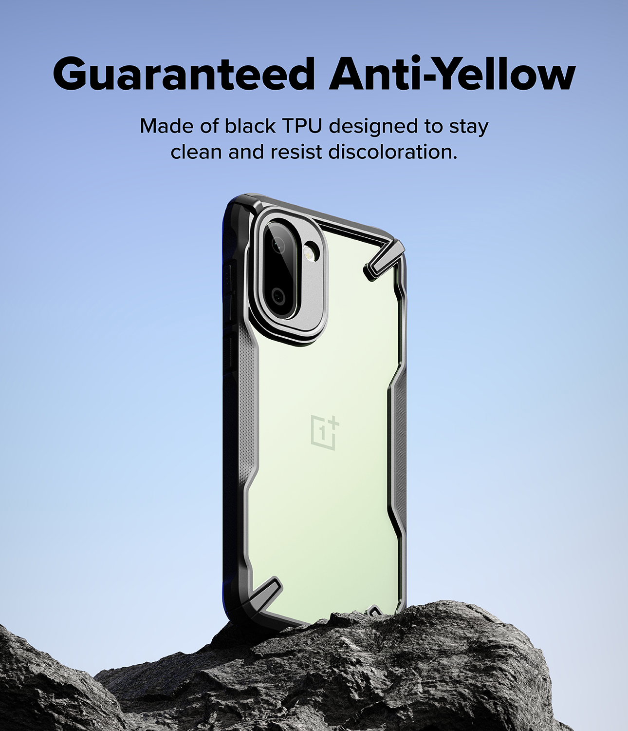 Anti-yellowing clear polycarbonate back and flexible TPU frames provide solid protection against drops and scratches
