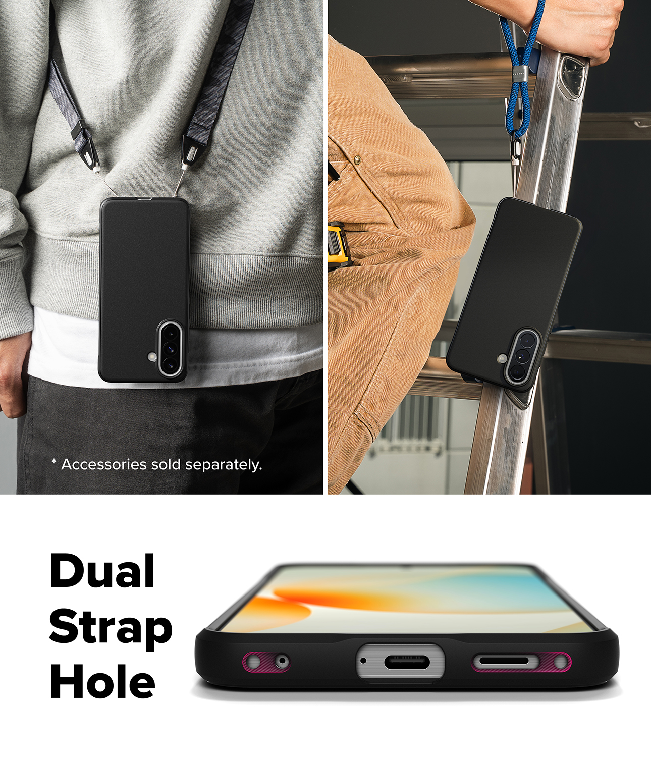 Duo-QuikCatch lanyard holes on each side of the device allow for the usage of accessories such as hand straps, wrist lanyards, and phone charms (Additional accessories not included)