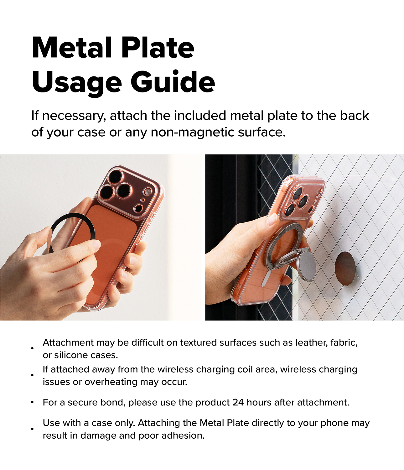 Use with magnetic cases or with a magnetic plate accessory. (For the best results, use with a Ringke Magnetic cases or a standard case with Ringke Magnetic Plate accessory)