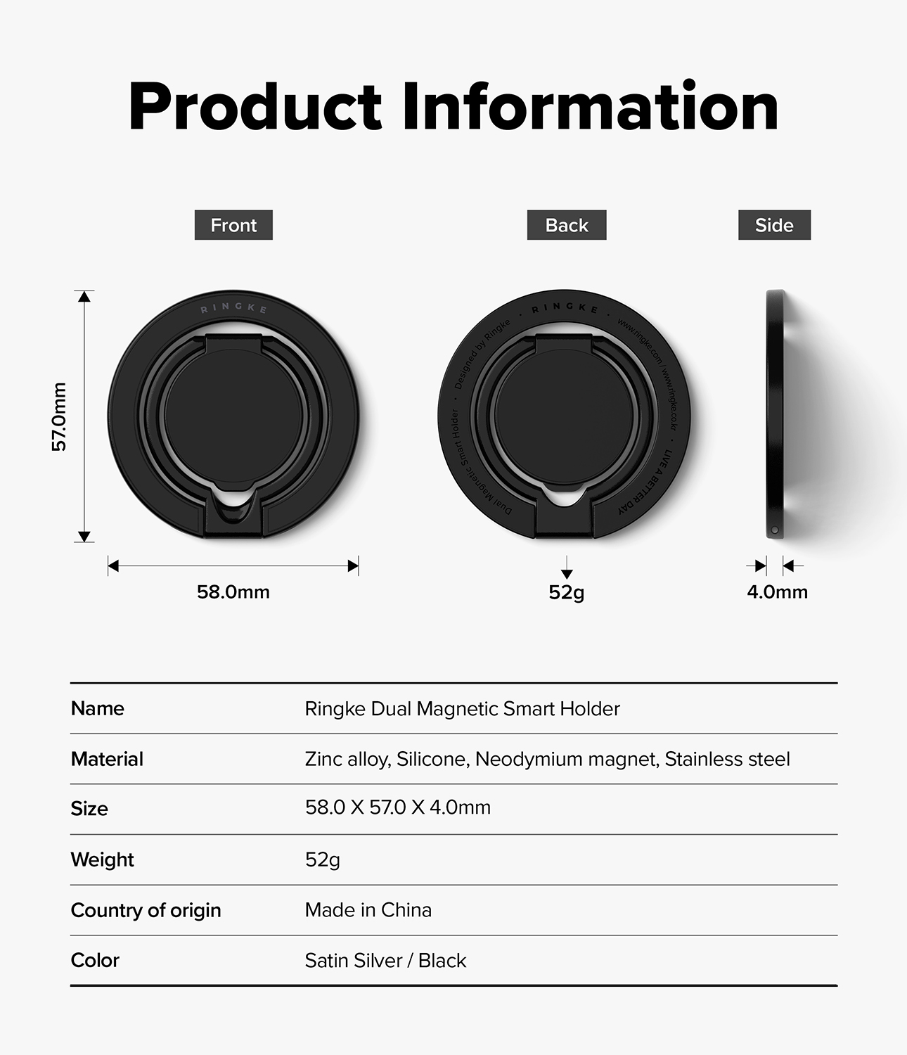 #Ringke #DualMagnetic #Dual #SMART #SMARTHolder #Holder #Magnetic #SmartRingMagnetic #Grip #TriFold #MultiFunction #Kickstand #Stable #Durable #Soft #Silicone #Neodymium #NonSlip #Hourglass #AllinOne #DoubleSided #3000G #MagnetForce #Kickstand #WobbleFree #NonSlip #Slim #SuperSlim #PhoneGrip #FingerRing #MetalPlate #Apple #AppleiPhone #iPhone #Samsung #SamsungGalaxy #GalaxyS #iPhone #SatinSilver #Silver #Black