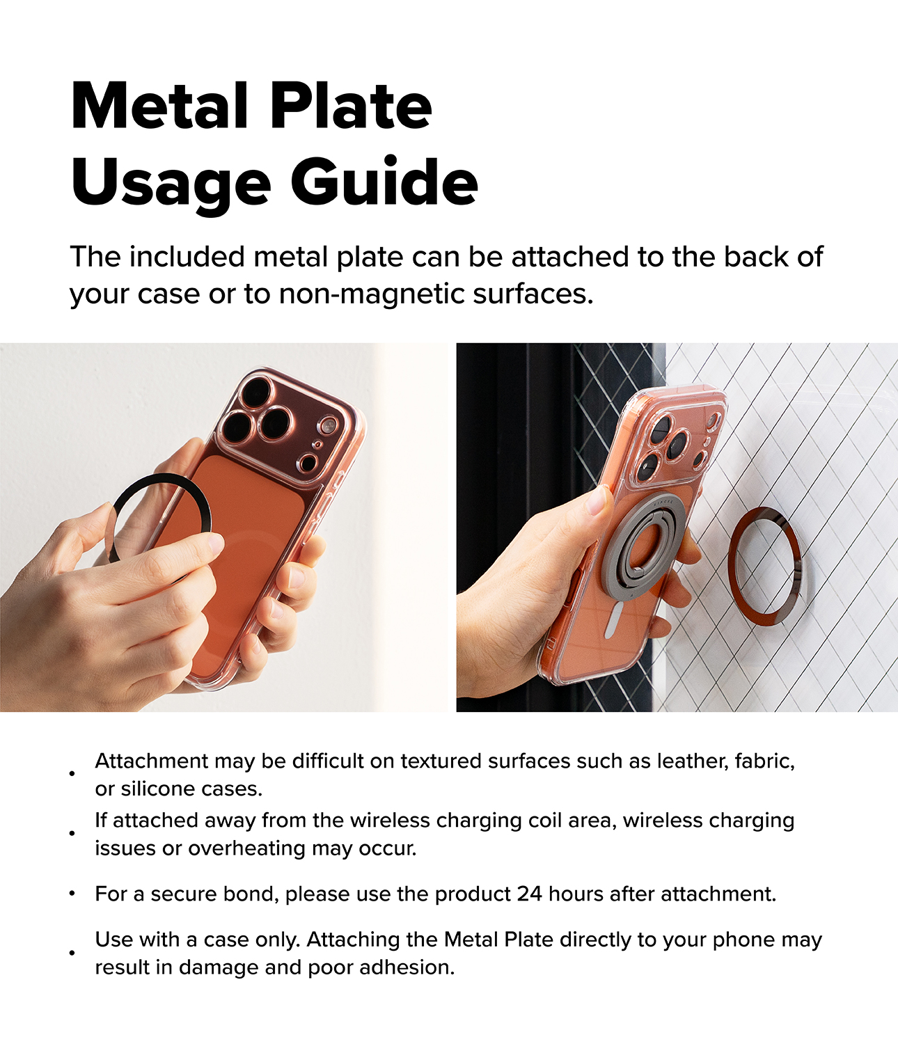 Use with magnetic cases or with a magnetic plate accessory. (For the best results, use with a Ringke Magnetic cases or a standard case with Ringke Magnetic Plate accessory)