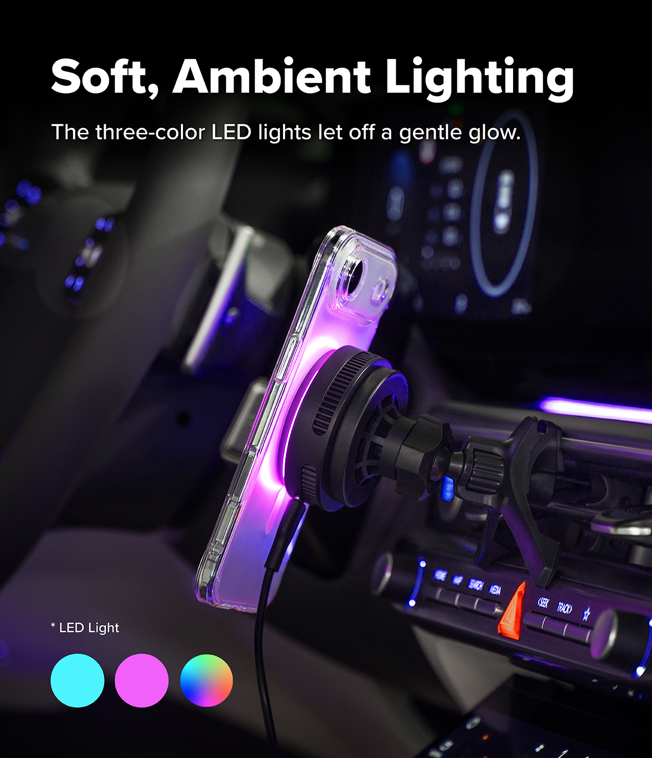 RGB Light fits beautifully with your vehicle's ambient lighting and is soft to not distract foo driving
